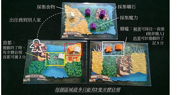玩家在一開始還有16種不同地形分布的領地(影響資源採集)以及16種個性迥異(影響法術能力)的家族人物卡可供挑選,